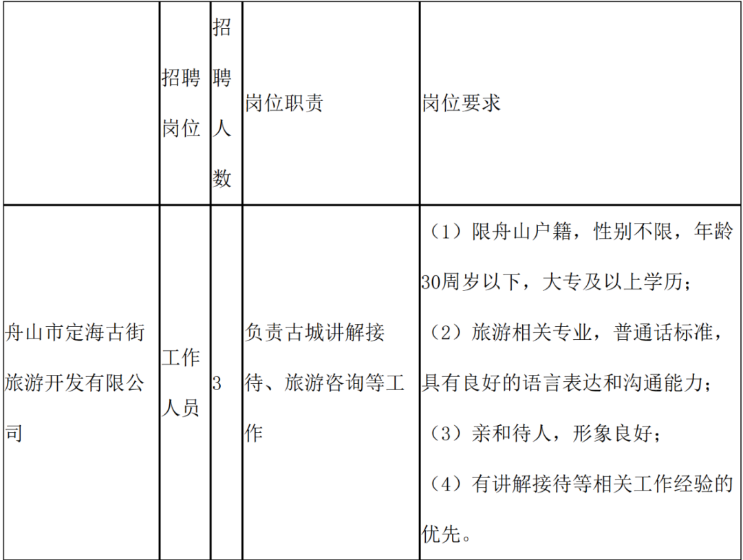 舟山市定海旅游发展集团有限公司工作人员(国企编)