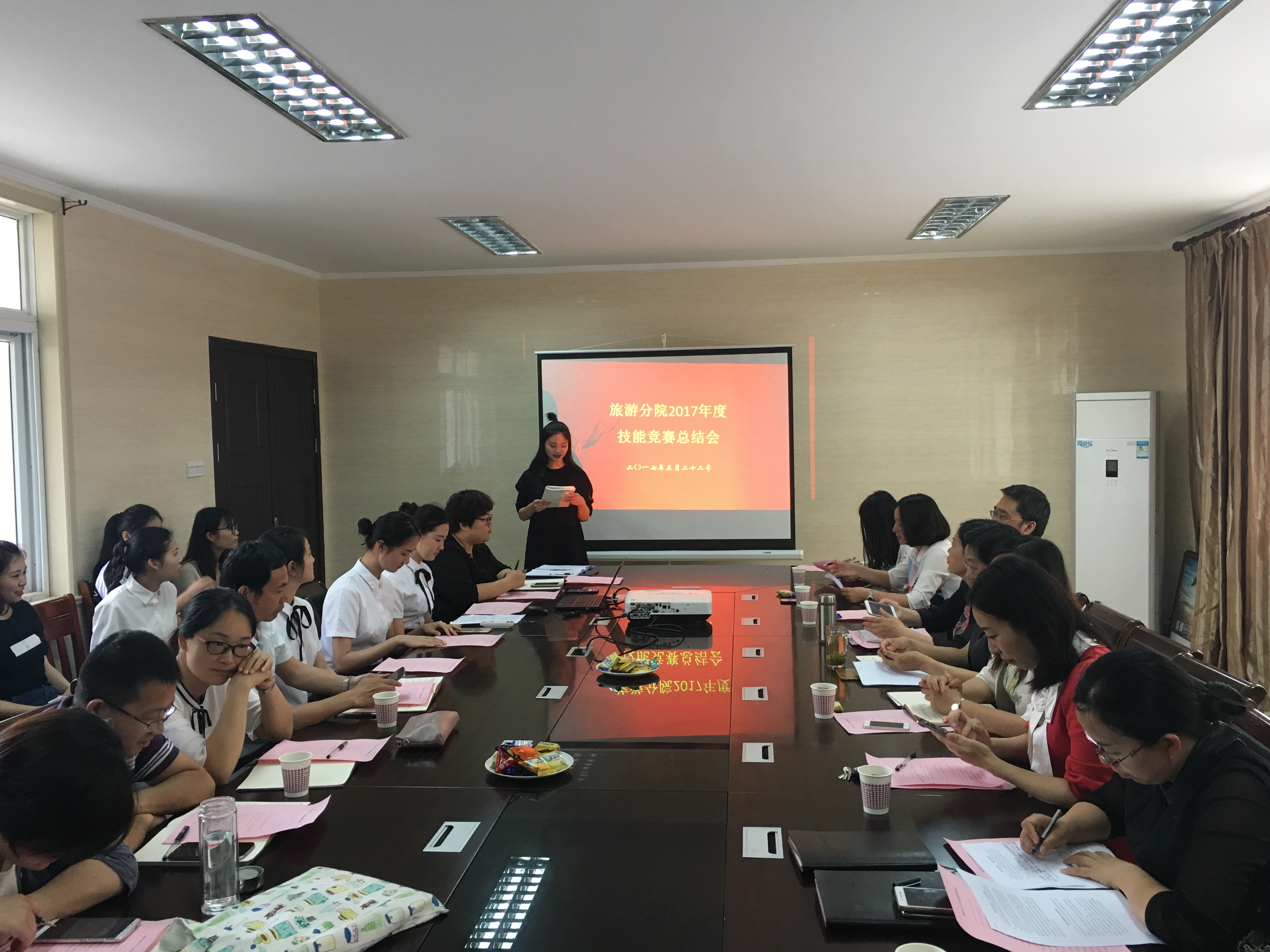 2017年5月22日下午,旅游分院会议室里响起了阵阵掌声,室内老师、学生齐聚一堂,使诺大的会议室都显得略有些拥挤,屏幕上中国红背景的PPT映入眼帘,旅游分院2017年度技能竞赛总结会在这里正式召开。