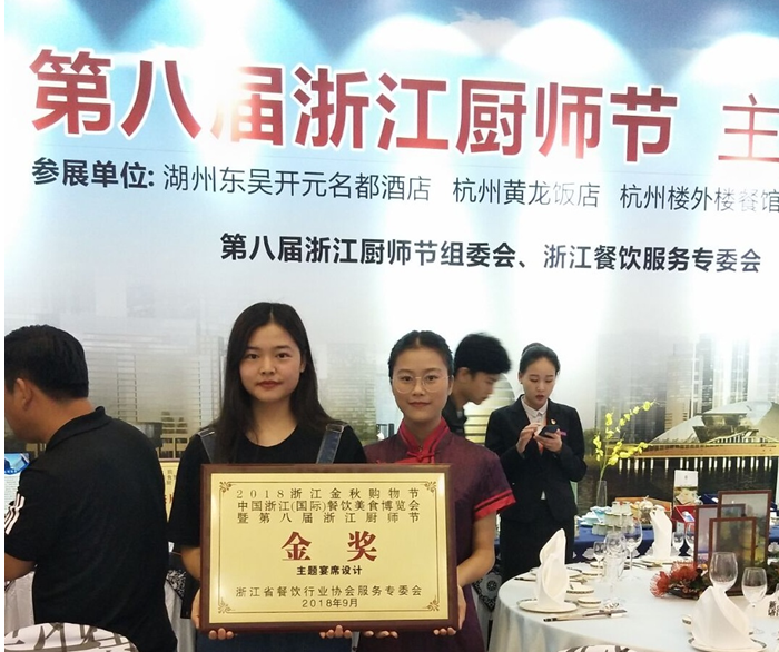 2018年9月26日—28日,我校受邀参加由浙江省餐饮行业协会主办的浙江省中餐服务技能大赛厨师节主题宴席设计展示,并斩获金奖。