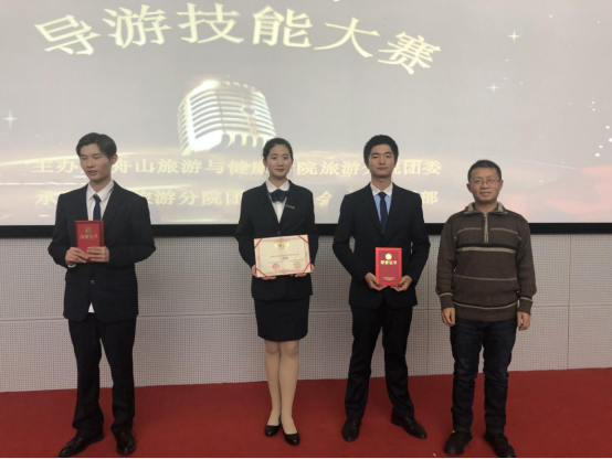 为了传播旅游文化知识,丰富校园文化生活,旅游分院于12月18日17时50分在教学楼107举办了旅游分院第五届导游技能大赛。此次活动的评委有教务处处长杨奇美老师,副教授娄月红老师,导游教研室宣敏老师,导游教研室主任黄刚老师,英语教研室主任张喜来老师,荣海涛老师以及辅导员孙瑜婷老师。