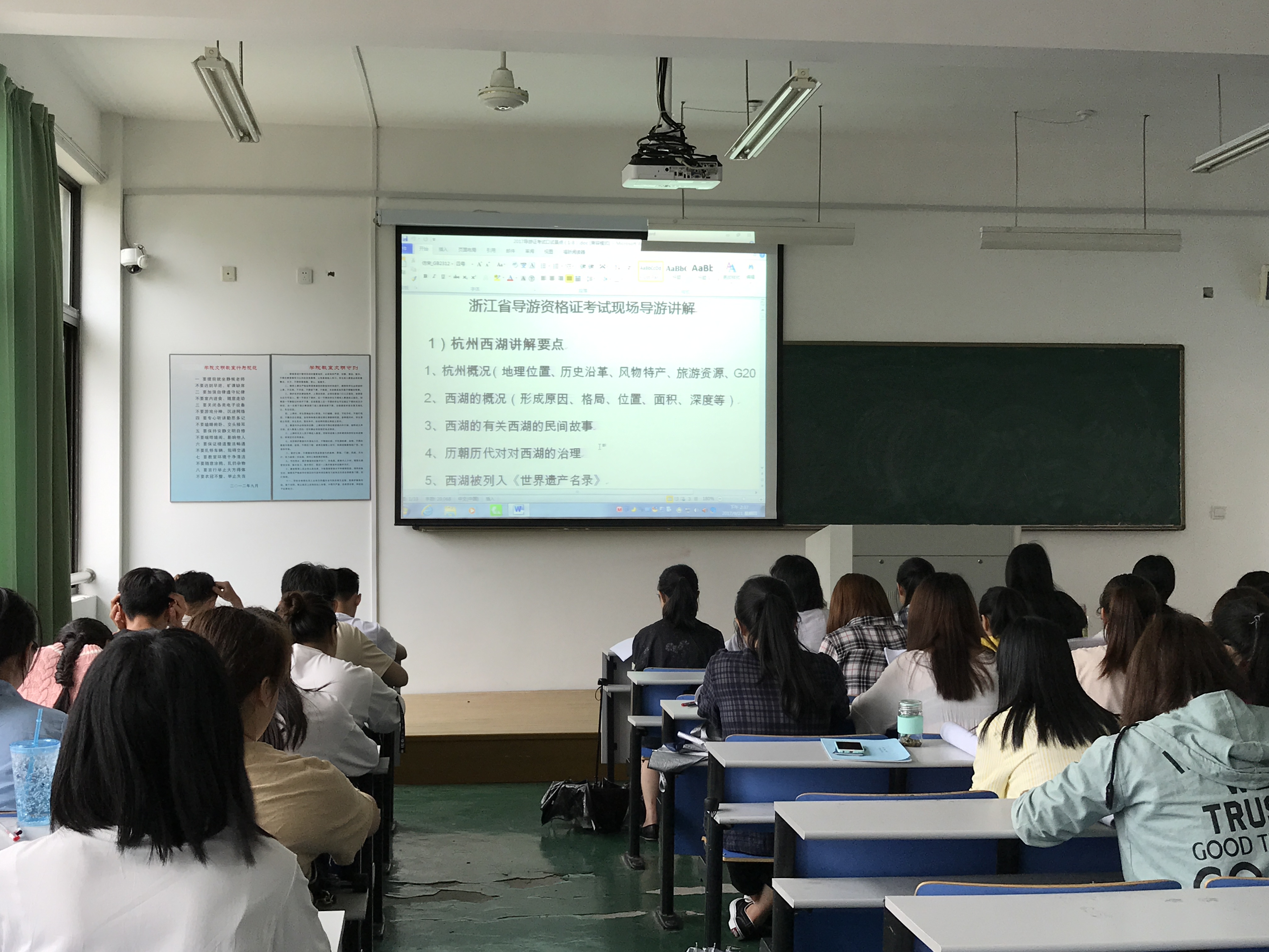 在校内辅导的同时,我校的“导考辅导团队”还承接了舟山市旅游委、舟山嵊泗县旅游委组织的社会考生“导考”培训,以宣敏老师为项目负责人对舟山本岛100多名社会考生进行考证辅导,考证通过率近60%,远远超过往年社会考生的通过率,嵊泗地区导考通过率超50%,远超去年的10%,且各授课老师深受辅导组织方和社会考生一致好评。