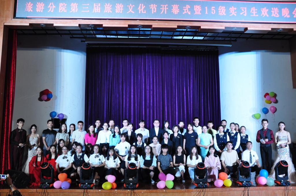 “旅游分院第三届旅游文化节晚会暨15级实习生欢送会”于2017年6月8日晚在报告厅举行。学院党委副书记王旭光、副院长陈爱国、校团委书记、公共教学部、商务系负责人以及旅游分院全体教师参加了晚会,舟山的各合作酒店代表作为嘉宾出席晚会。