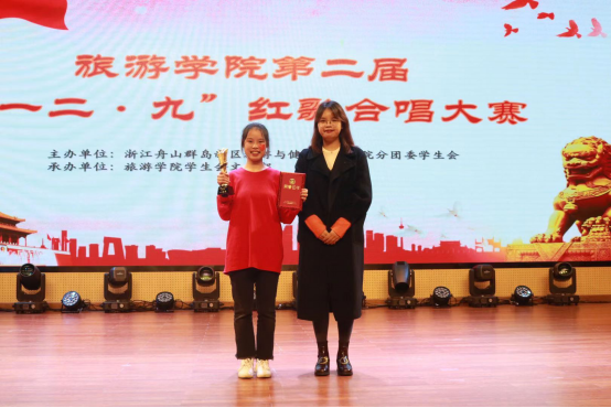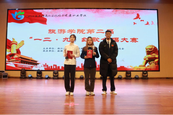 为了弘扬爱国精神,重温红色经典,增强班级凝聚力,丰富校园生活,旅游学院于11月30日在致远大讲堂举行了第二届一二.九红歌合唱大赛。本次比赛出席的有分团委书记兼辅导员徐思巧老师、辅导员戚梦瑜老师,学生会执行主席陈林平,学生会主席陈羽菲。