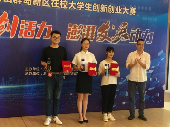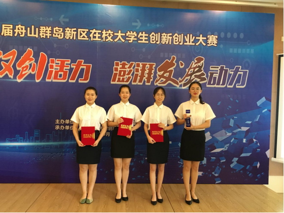 此次获奖的创业项目主题名为“轻舟”,欲打造以舟山海岛非遗文化为主题的特色民宿,致力于传承和发扬舟山非遗传统文化。作为没有创业经验的在校学生,四位同学放松心态,沉着冷静,展示了自信大方的良好精神面貌,获得了评委的一致好评,最终以第三名的好成绩获得了大赛二等奖!,也刷新了我校市级创新创业大赛最好的成绩!