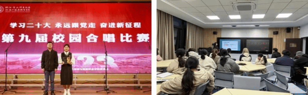 担任班长期间,她致力于班风建设,积极组织班级开展各类团建活动,定期开展主题班会,增强班级凝聚力。曾组织班级参加学校第九届合唱比赛获得一等奖。在班集体共同努力下荣获校“优秀团支部”荣誉称号。