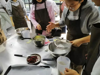 此次活动内容主要为制作蔓越莓饼干,成员们根据配方精确操作,分工明确,相互协作。有人负责软化黄油,有人负责切碎蔓越莓干,有人负责揉面团……大家忙的不亦乐乎,伴随着烤箱中发出的阵阵香味活动也到了结尾,社员们品尝着团队协作的成果,脸上都洋溢笑容。同学们积极动手制作西点,体验自己动手的乐趣,分享烘焙的甜蜜。