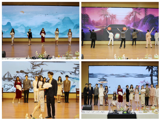 开幕式上还进行了精彩纷呈的节目表演。表演者们身着中国传统服饰旗袍,摇曳着曼妙的身姿,举手投足间,流露出端庄与雅致,在流动的韵雅中展示了美丽和知性,用独有的中国印记勾勒着华夏形象。茶艺社和书法社的同学也带来了精彩表演,汇聚了书画、诗词、茶艺等文化元素的表演实现了优秀传统文化的荟萃和交流,让大家在现场体验了中国优秀传统文化的无穷魅力。开幕式上,非遗、烘焙、花艺以及调酒四大模块的作品展也展示了旅游学子的专业技能和艺术底蕴,吸引了不少师生驻足观看。