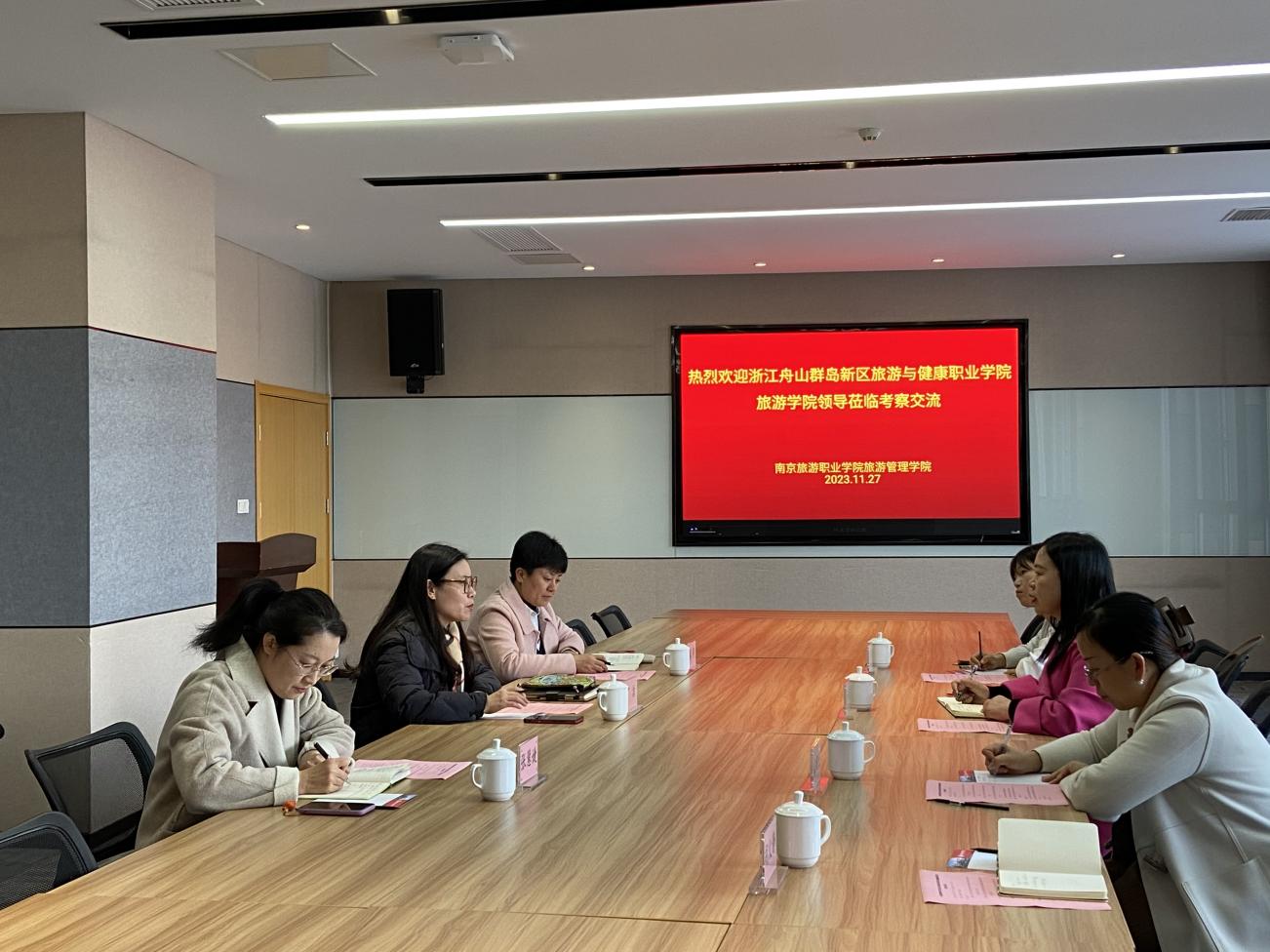 为了进一步加强学科建设,进一步教师教学能力大赛和学生技能比赛等大赛经验,旅游学院党总支书记、院长杨奇美,酒店管理专业教师安桃艳、赵娟娟,导游专业教师胡文静于11月27日前往南京旅游职业学院进行参观交流。