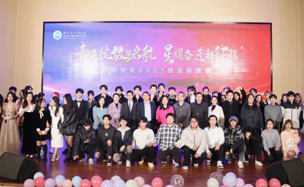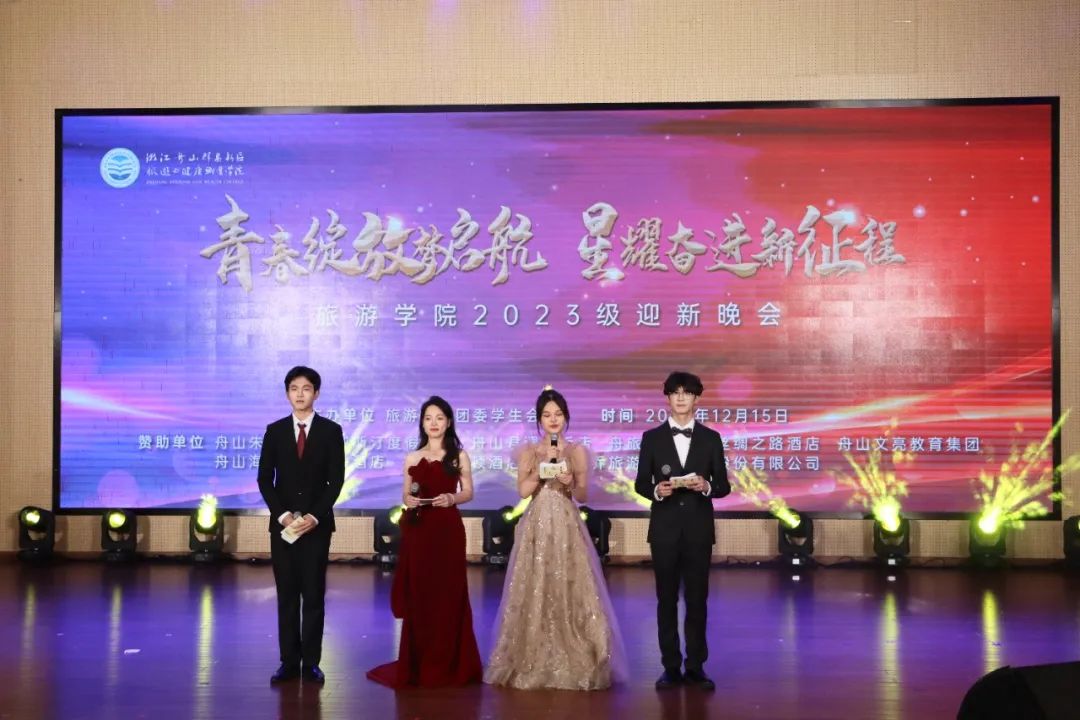 12月15日晚,旅游学院举办了“青春绽放梦启航 星耀奋进新征程”2023级迎新晚会。校党委委员、副校长孔志华,校工会办公室主任叶勇敏,学工部副部长郑永骥以及各二级学院领导出席晚会,君澜大饭店人资总监黄仁君、海中洲国际大饭店人事经理周鲁、国家金牌导游孔争浩应邀参加晚会,学院老师和学生共同观看了演出。