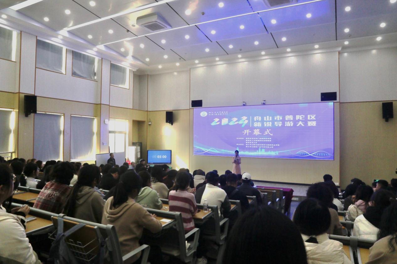 2023年12月13日,2023年舟山市普陀区新锐导游大赛在浙江舟山群岛新区旅游与健康职业学院成功举办。普陀区文化和广电旅游体育局党组书记张奎邦,舟山市文化和广电旅游体育局行业管理处副处长余海鸥,普陀区文化和广电旅游体育局党组副书记、副局长乐波,普陀区总工会党组成员、副主席陶俊国等领导莅临现场,同时邀请了浙江海洋大学经管学院副教授郭旭、舟山旅游商贸学校高级教师叶华盛、舟山职业技术学校高级教师缪红意等5名专家共同担任大赛评委。普陀区新锐导游大赛是由舟山市普陀区文化和广电旅游体育局主办,浙江舟山群岛新区旅游与健康学院承办的大型赛事,旨在选拔出一批讲政治、专业精、业务强、服务好的优秀导游,发挥好以点带面的示范引领作用,激励广大导游提升职业荣誉感、提高服务水平和综合素质,助力全区文化和旅游高质量发展。来自普陀区的9名参赛选手同台竞技,讲述普陀故事,传播时代新声。他们通过现场导游词创作讲解和自选景点导游讲解两个环节,对普陀区的历史文化、非遗故事、民风民俗、山水风光娓娓道来,充分展示导游的专业素养、诠释导游的职业信仰、讲述普陀的美景好物,青春飞扬,激情满怀。