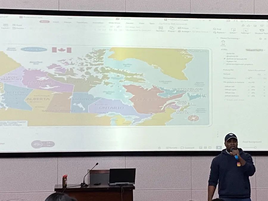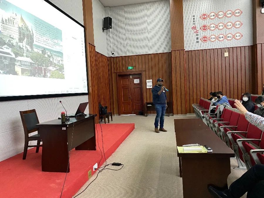 讲座中,外教Jones进行了自我介绍,随后从衣食住行、气候条件和地理位置等角度出发,全方位地展示了他的家乡加拿大,让同学们更加深入了解当地的风土人情。