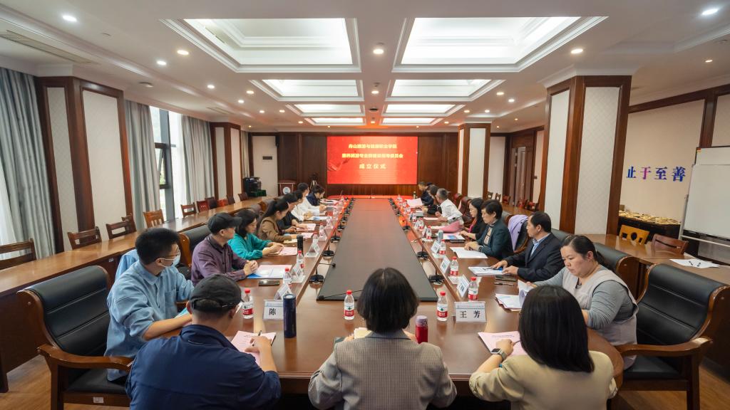 2021年5月10日下午,我校举行康养旅游专业群建设指导委员会成立仪式,旅游学院院长杨奇美主持会议,校长郑能波、教务处处长邬玮玮、健康学院院长周菊芝、健康学院副院长马怡婷、旅游学院副院长黄刚及专业群教师,浙江京恩医疗科技有限公司董事长兼浙江京恩康旅文化科技产业有限责任公司负责人金琳、舟山息耒酒店管理公司副总方红、舟山太平洋国际旅行社总经理周娜及浙江海洋大学和舟山旅游商贸等企事业专家出席成立仪式。