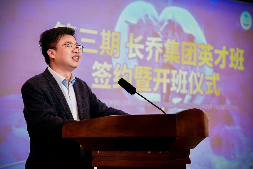 随后,我校党委委员、副校长黄承致辞,他表示,长乔集团英才班的设立,是学校深化产教融合的重要举措,也是响应企业人才需求、服务现代海洋城市建设的具体实践。希望双方积极探索新的合作模式,在专业设置、课程开发、实践教学等环节深度合作,培养"用得上、留得住"的应用型旅游人才。校企双方通过"双师互聘""项目共研"等模式,推动教育链与产业链精准对接,助力学生成长,构建校企共育人才生态圈。