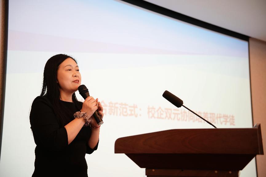 之后,旅游学院党总支书记、院长杨奇美从专业建设、师资队伍、社会服务等方面详细介绍了导游专业校企合作“学徒培养”模式,学生投身于实际工作场景,在实践中积累经验、提升技能,实现全方位的学习与蜕变。杨院长向积极促成此次签约暨开班仪式的校企双方工作人员致以诚挚谢意,她还寄语本期学员,在学习过程中保持认真的态度,秉持团结协作精神,用出色表现为学校与长乔集团赢得荣誉。