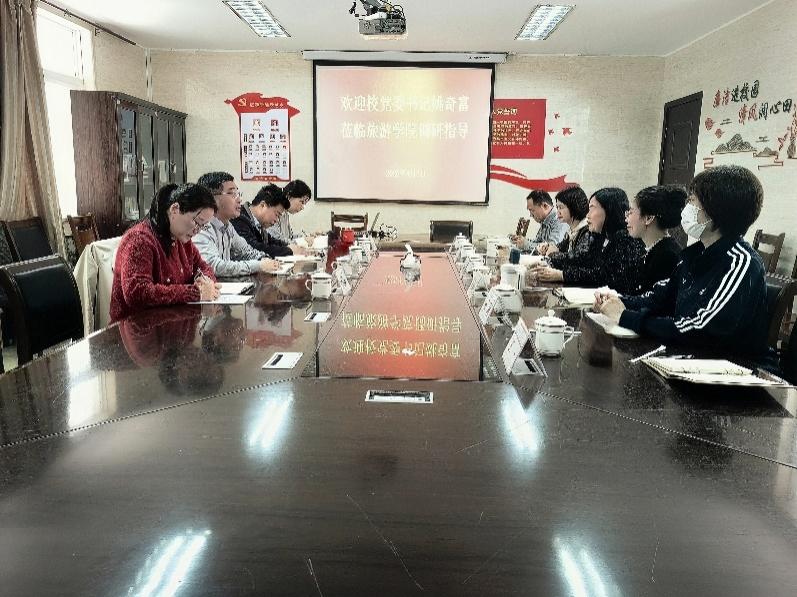 2025年4月8日,学校党委书记姚奇富到旅游学院调研指导工作,学校副校长黄承、人事处处长芮明珠、教务处处长邬玮玮陪同,旅游学院院长杨奇美、副院长邓捷、副书记郑婷璐及教师代表参加座谈会。