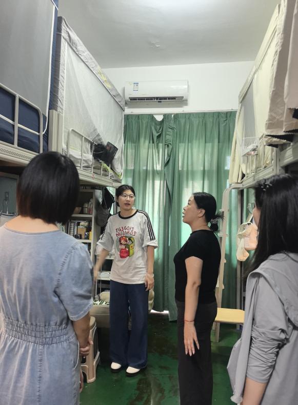 9月10日,旅游学院党总支书记、院长杨奇美,副院长邓捷、党总支副书记郑婷璐及辅导员、班主任深入学生寝室走访。