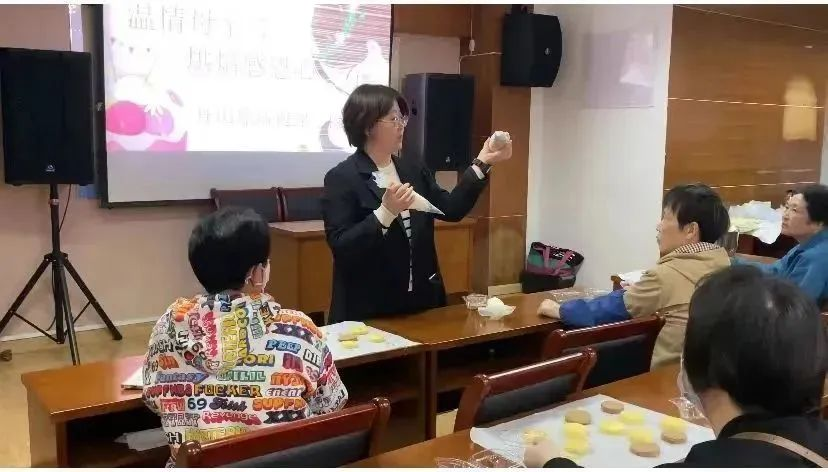 当天,居民们热情满满,李静老师讲解了制作步骤,并进行了现场演示,居民们认真听讲,跃跃欲试。
