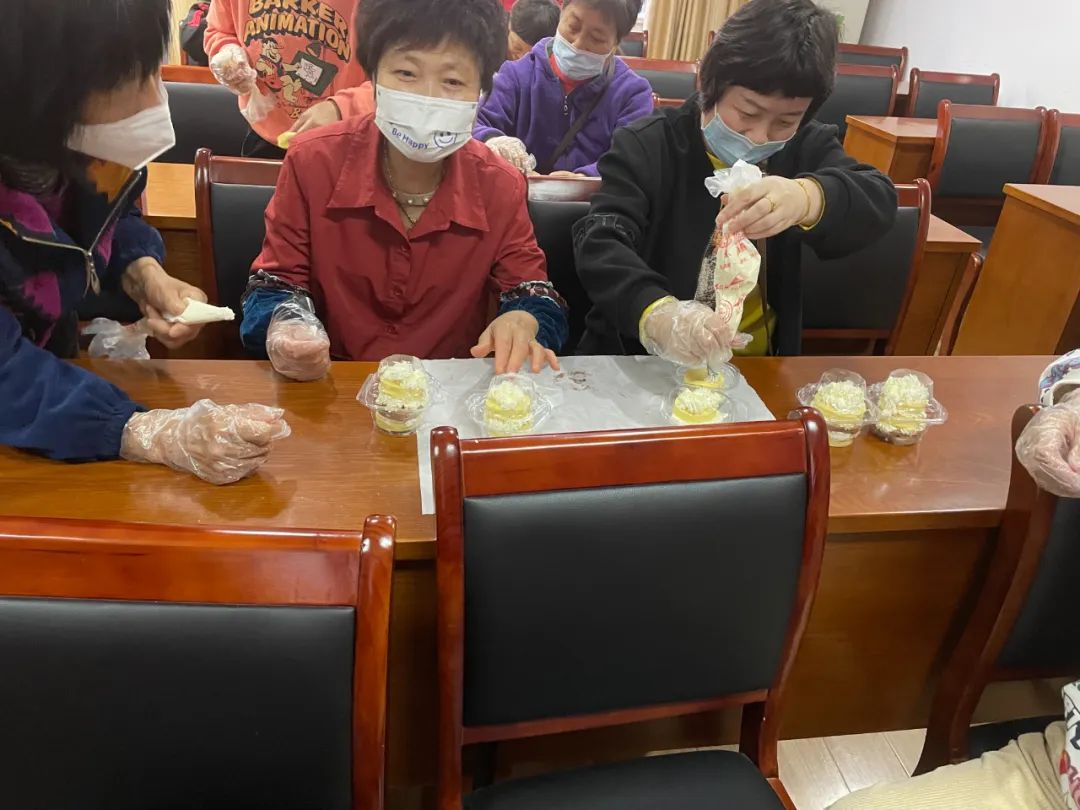 在李静老师演示完之后,大家迫不及待开始制作,居民们变身烘焙达人,体验自己动手的乐趣,室内一派其乐融融的景象,看着自己亲手完成的作品,幸福感满满。