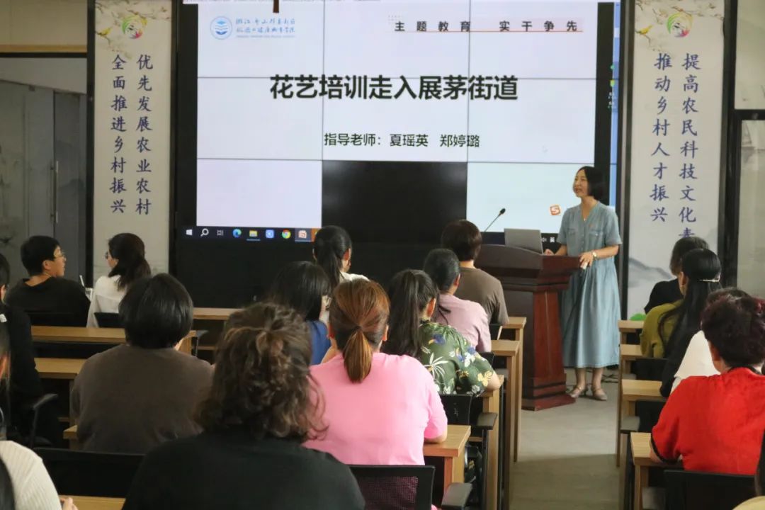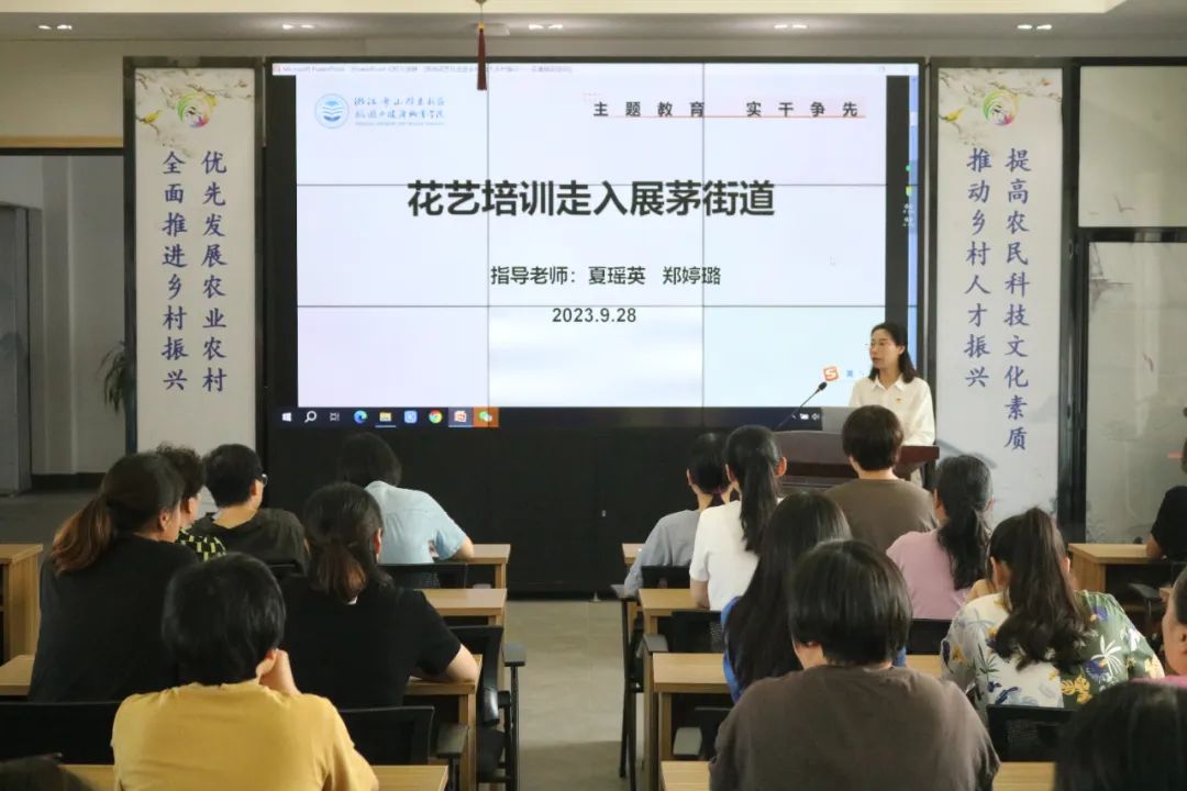 本次花艺培训走入展茅街道,展茅成校积极组织人员参加,现场座无虚席。
