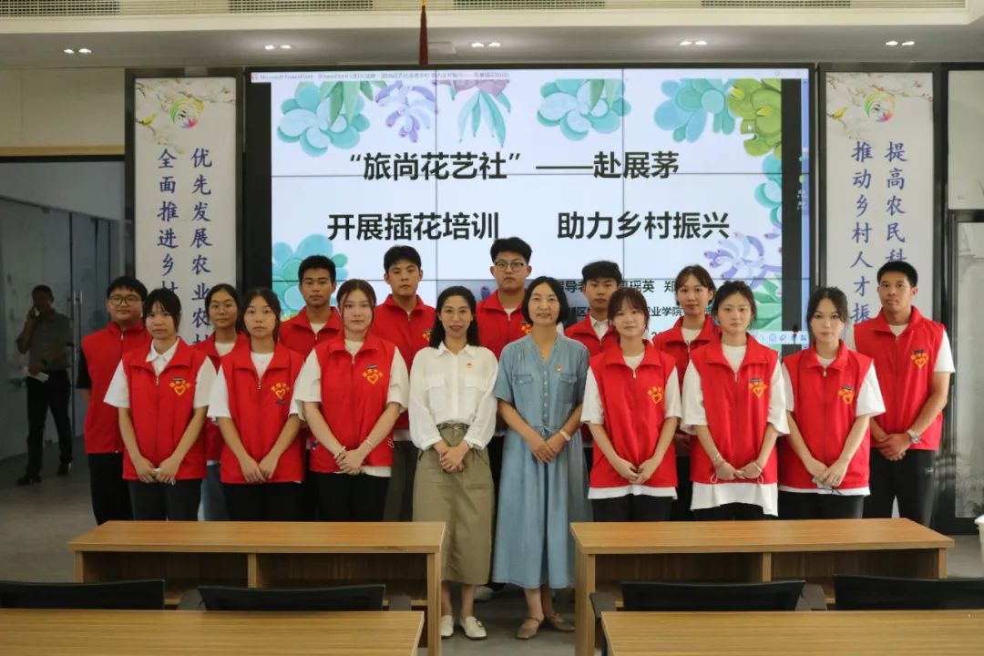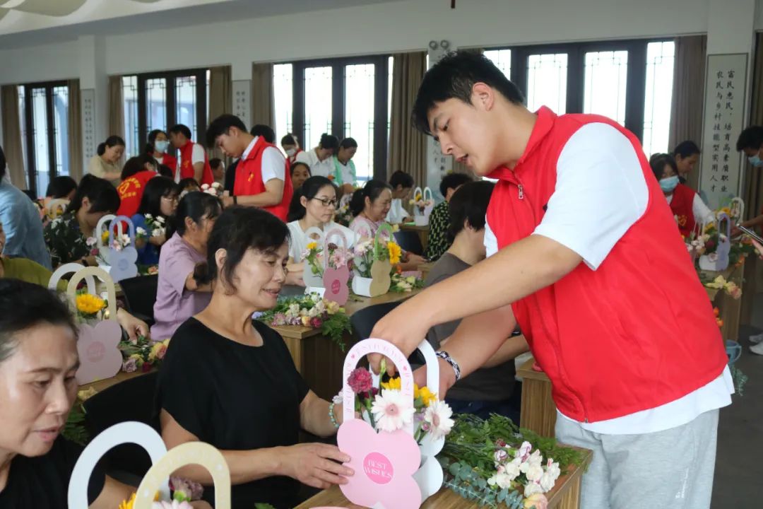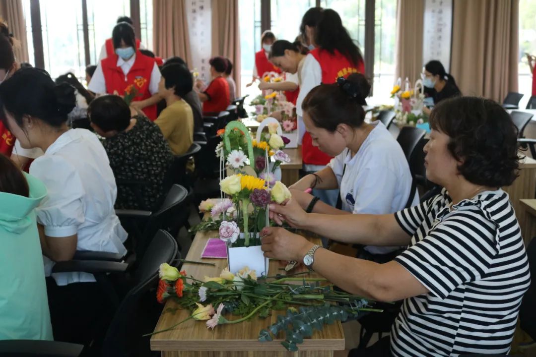 为立足岗位作贡献,旅游学院巾帼文明岗发挥专业优势,在学院党总支副书记郑婷璐和教师夏瑶英的带领下,前往展茅街道开展花艺培训志愿服务。 每一次培训服务,志愿者都会提前做好准备,反复进行插花培训与巩固。